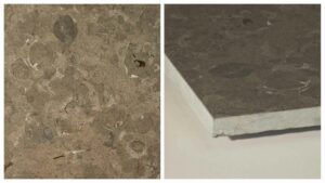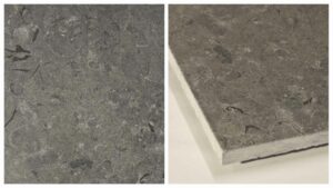 Le Fossil Grey est une pierre aux tons allant du gris clair à un gris plus foncé.