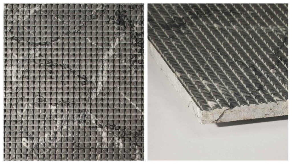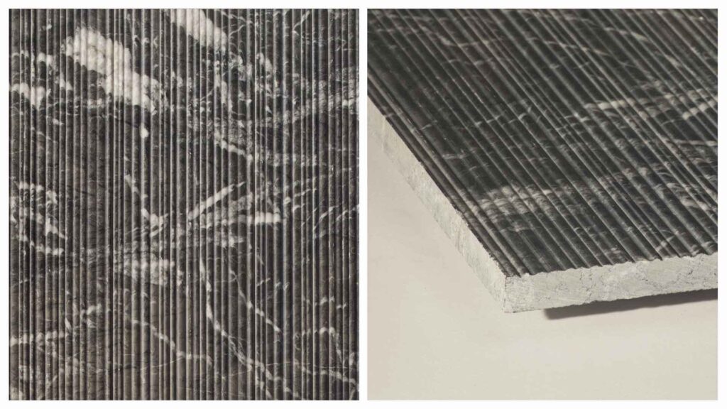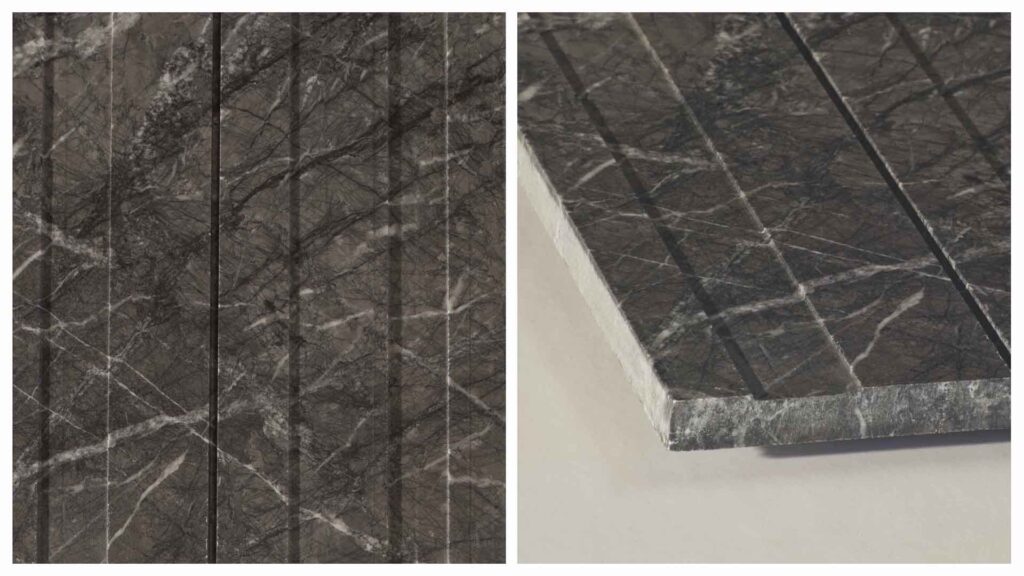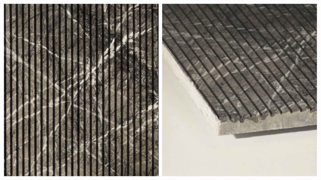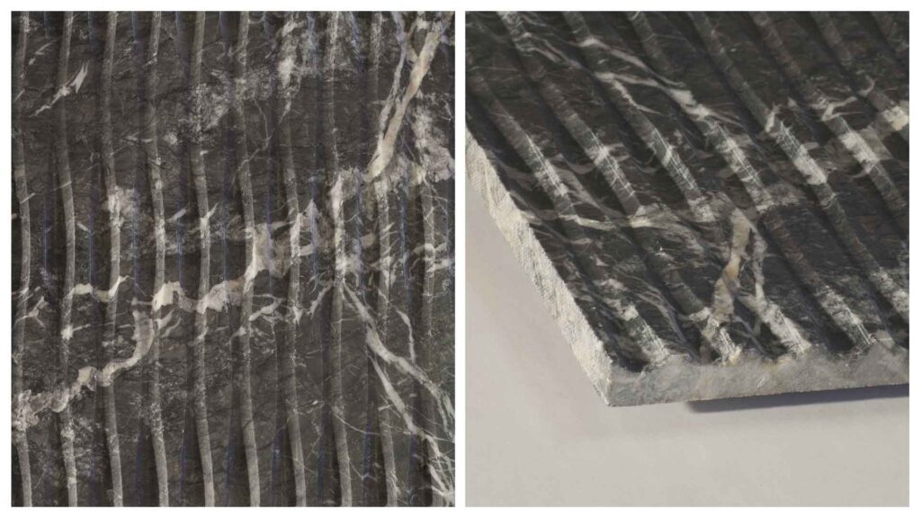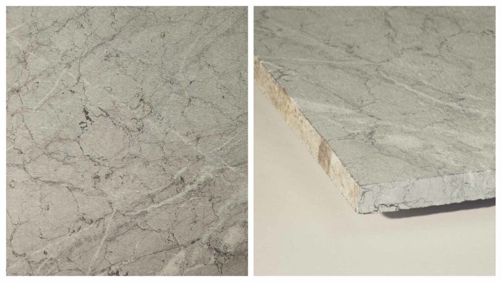 Il Grigio Carnico è un marmo italiano con fondo grigio e marcate venature bianche.