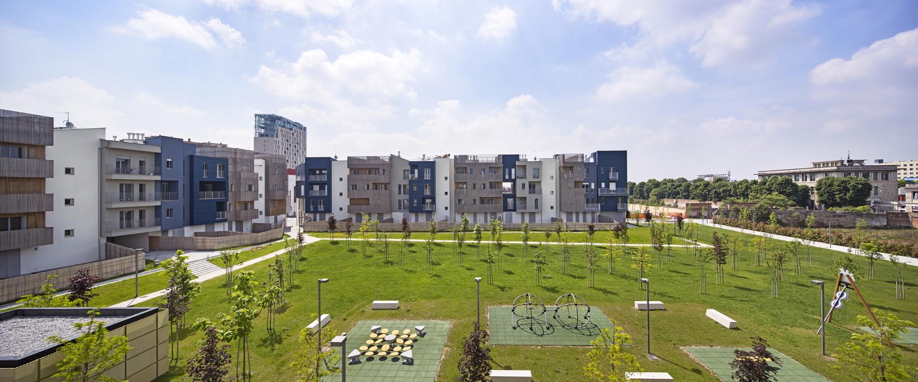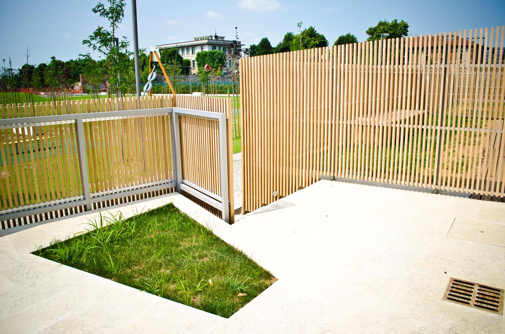 Per la pavimentazione esterna di Life, nel moderno Quartiere Regolo a Brescia, il protagonista indiscusso è il Grolla Beige diamantato. Gli edifici formano e segnano i bordi della zona in relazione al suo contesto e ne definiscono il vuoto verde centrale. Il parco urbano è organizzato in tre aree tematiche: un parco alberato, un parco giochi e il parco acquatico.