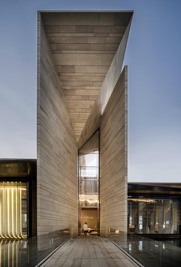 Edificio moderno di circa 2000 metri quadrati, il Light Waterfall Sales Center, centro congressi di Wuhan, presenta una facciata incollata caratterizzata da un melange tra il Grolla Beige e il Grolla Rosato levigati. La nostra pietra ricopre anche la pavimentazione con il Grolla Rosato fiammato.