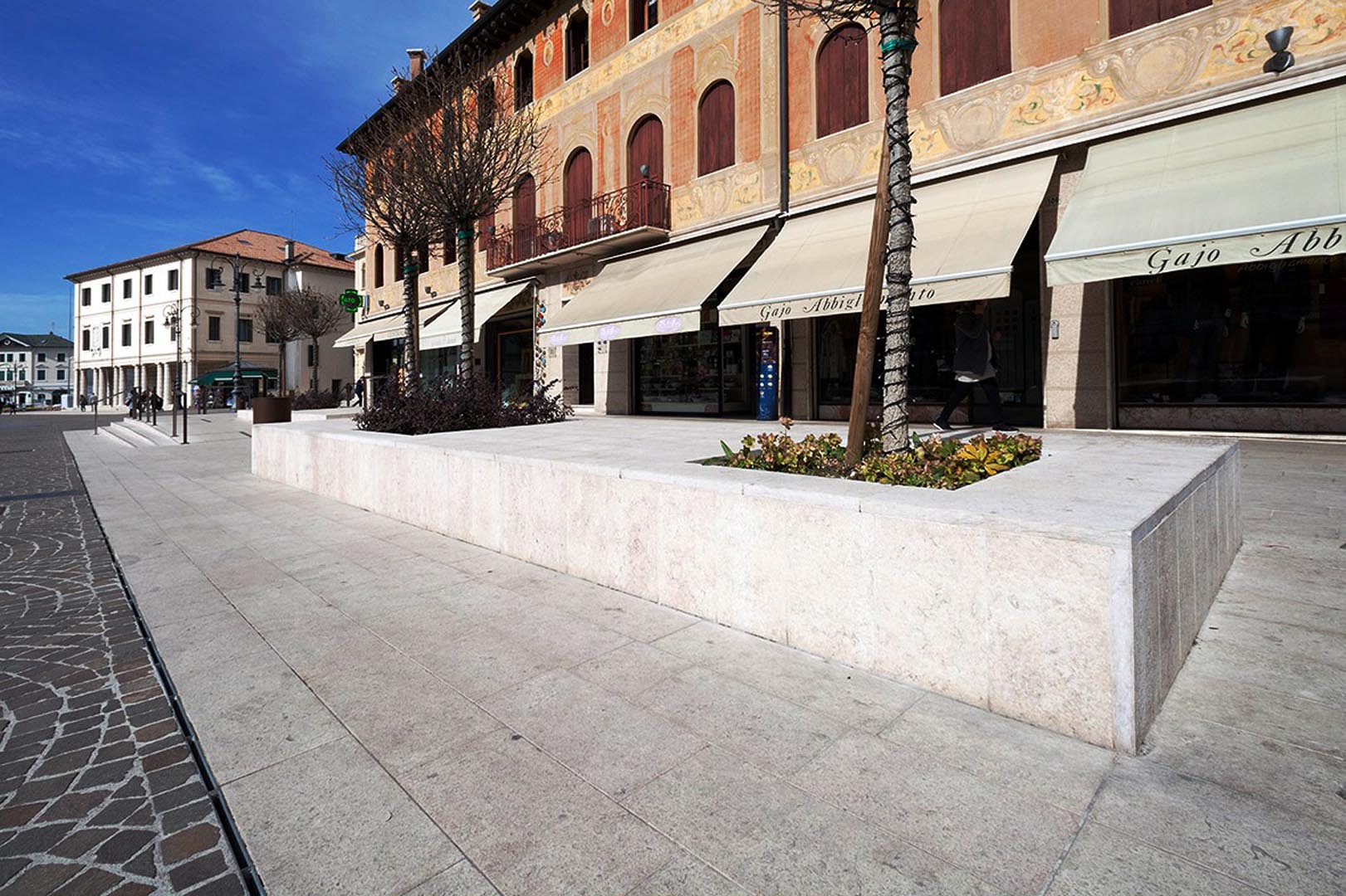 Per una superficie di più di 1000 metri quadrati sono stati utilizzati i nostri tre marmi con la finitura fiammata.