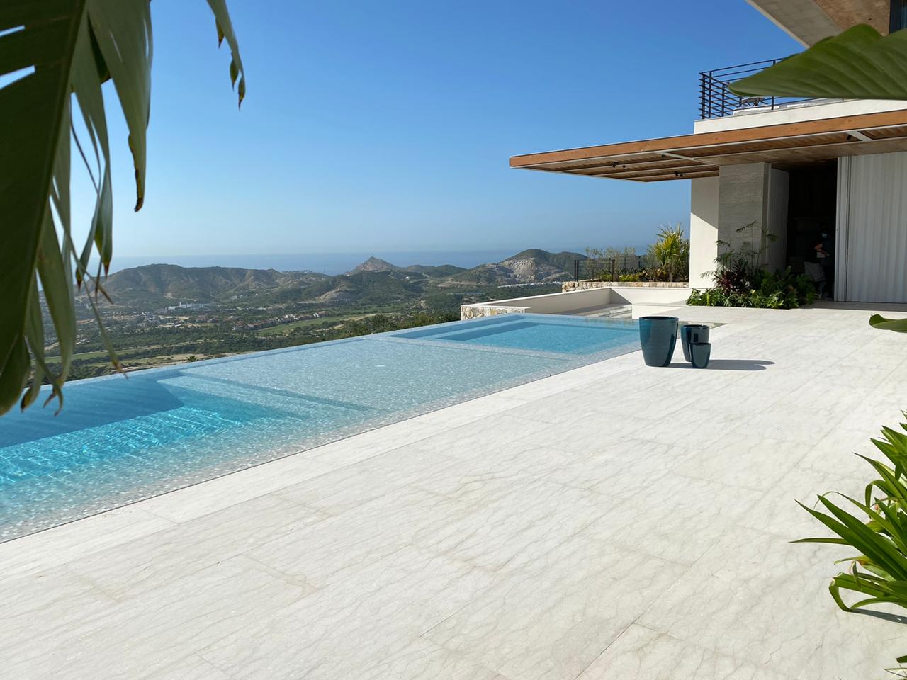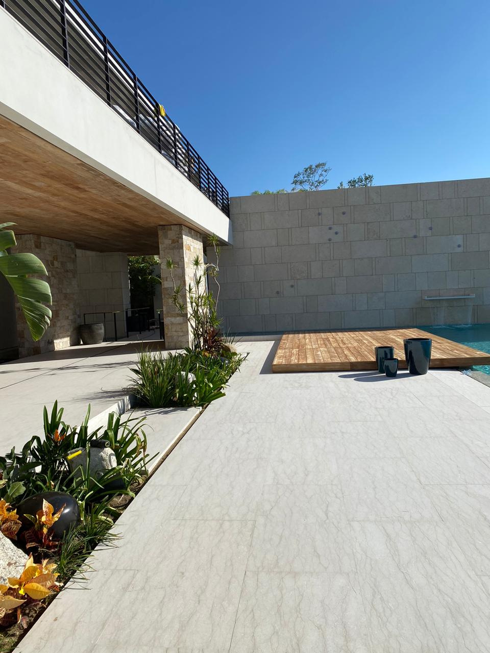 La piscina di questa residenza privata messicana è stata delineata da grandi piastrelle di 120x60x2 cm di Grolla Filettato microbocciardato e leggermente spazzolato. Nonostante la vicinanza al mare e al clima caldo e umido durante tutto l’anno, la nostra pietra esclusiva è resistente e dura nel tempo.