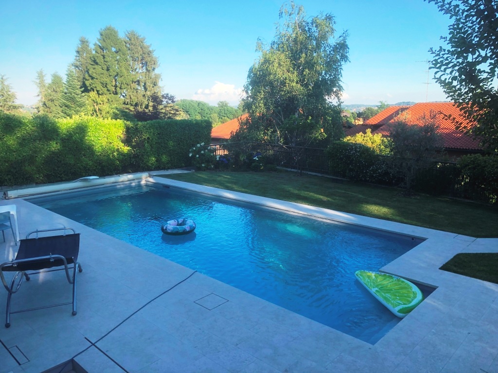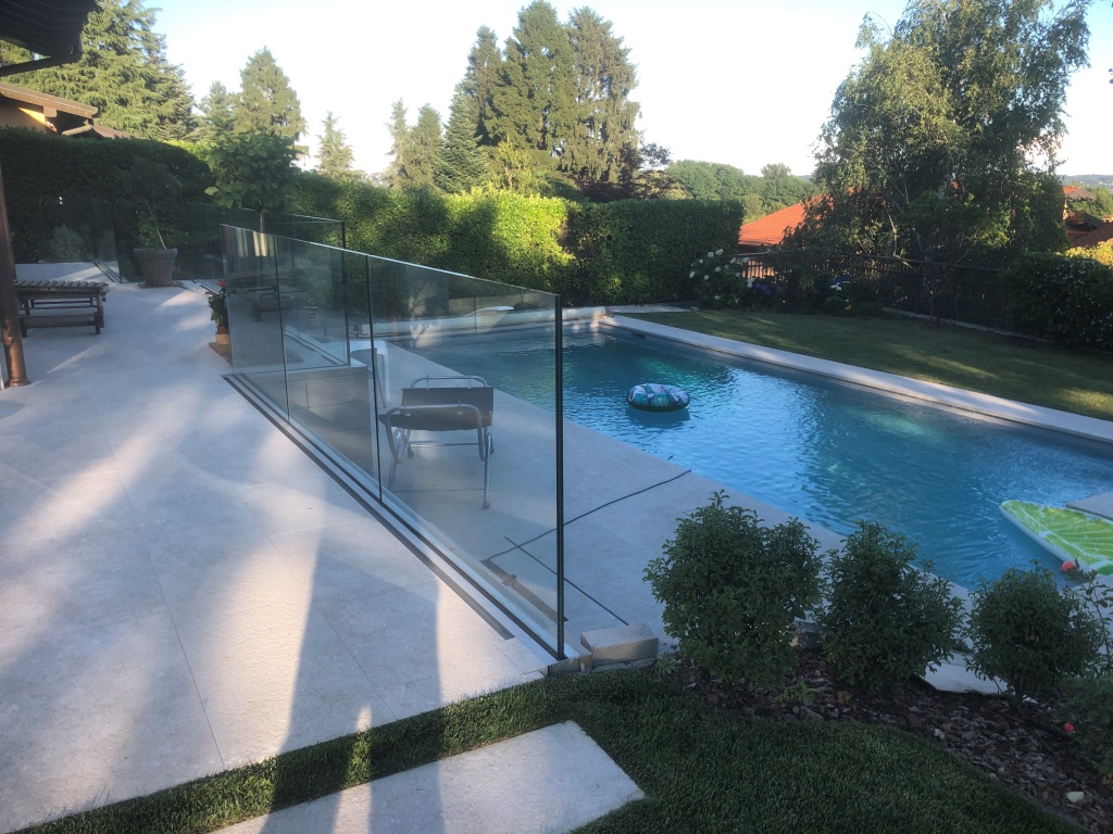 Per la piscina di questa magnifica villa di Varese, Marmi Faedo ha fornito il Grigio Olivo con una texture fiammata per il rivestimento della pavimentazione.