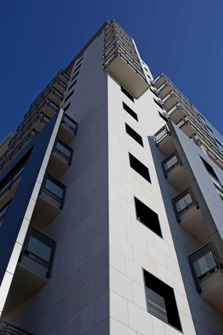 La Torre Edison a Milano presenta una facciata ventilata rivestita dal nostro Grolla Beige sabbiato con formato a correre di 3 centimetri di spessore.
