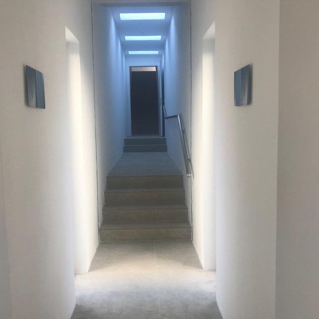 In una delle isole della Grecia una meravigliosa villa privata veste i suoi interni con il nostro Grigio Olivo sabbiato + WJ in formati che misurano 80x40x2 e 60x30x2 centimetri.