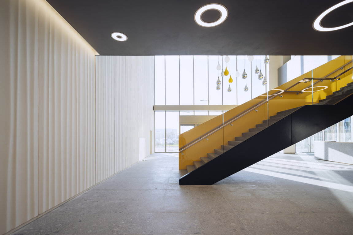 Siamo a Marostica, Vicenza, presso la sede di un’azienda molto nota, Vimar. Gli uffici, insieme ai reparti di logistica e produzione, si estendono su una superficie di oltre 70.000 metri quadrati e sono caratterizzati da una struttura innovativa ed ecocompatibile. Vimar ha scelto intenzionalmente materiali e tecnologie sostenibili per i suoi locali, a partire dalla luce naturale che alimenta l’impianto fotovoltaico e si riflette sulle scalinate realizzate con i nostri Grigio Olivo e Fossil Grey. Le ampie terrazze esterne, invece, sono rivestite con il nostro Grigio Olivo sabbiato con un sistema di posa sopraelevato.